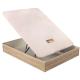 Abatible de madera al suelo color natural con laminados de madera de máxima resistencia y durabilidad con esquinas de madera maciza: 2 rectas en cabecero y 2 curvas en piecero. Tapa con tejido 3D transpirable del mismo color que la madera, que proporciana una óptima aireación del colchón y firmeza extra. Tapa compuesta por: Estructura metálica con 5 travesaños y soporte perforado de alta resistencia. Canapé con alta capacidad y una sola cubeta. Tirador del mismo color que la tapa. Arquillo sujeta colchón. Apertura frontal mediante amortiguadores neumáticos. Acabado para su apoyo directo al suelo con altura de 31 cm.