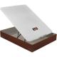 Abatible de madera al suelo color cerezo con laminados de madera de máxima resistencia y durabilidad con esquinas de madera maciza: 2 rectas en cabecero y 2 curvas en piecero. Tapa con tejido 3D transpirable del mismo color que la madera, que proporciana una óptima aireación del colchón y firmeza extra. Tapa compuesta por: Estructura metálica con 5 travesaños y soporte perforado de alta resistencia. Canapé con alta capacidad y una sola cubeta. Tirador del mismo color que la tapa. Arquillo sujeta colchón. Apertura frontal mediante amortiguadores neumáticos. Acabado para su apoyo directo al suelo con altura de 31 cm.