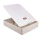 Abatible de madera al suelo supra color glaciar con laminados de madera de máxima resistencia y durabilidad con 4 esquinas de madera maciza redondeadas. Tapa con tejido 3D transpirable del mismo color que la madera, que proporciana una óptima aireación del colchón y firmeza extra. Tapa compuesta por: Estructura metálica con 5 travesaños y soporte perforado de alta resistencia. Canapé con alta capacidad, una sola cubeta y una sola tapa. Tirador del mismo color que la tapa. Arquillo sujeta colchón. Apertura frontal mediante amortiguadores neumáticos. Acabado para su apoyo directo al suelo con altura de 41 cm.