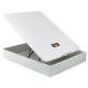 Abatible de madera al suelo color blanco con laminados de madera de máxima resistencia y durabilidad con esquinas de madera maciza: 2 rectas en cabecero y 2 curvas en piecero. Tapa con tejido 3D transpirable del mismo color que la madera, que proporciana una óptima aireación del colchón y firmeza extra. Tapa compuesta por: Estructura metálica con 5 travesaños y soporte perforado de alta resistencia. Canapé con alta capacidad y una sola cubeta. Tirador del mismo color que la tapa. Arquillo sujeta colchón. Apertura frontal mediante amortiguadores neumáticos. Acabado para su apoyo directo al suelo con altura de 31 cm.