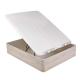 Abatible de madera 3D color glaciar con laminados de madera de máxima resistencia y durabilidad con 4 esquinas de madera maciza redondeadas. Tapas con tejido 3D transpirable del mismo color que la madera, que proporciana una óptima aireación del colchón y firmeza extra. Dos tapas compuestas por: Estructura metálica con 5 travesaños y soporte perforado de alta resistencia. Canapé con alta capacidad, una sola cubeta y dos tapas. Tiradores del mismo color que la tapa. Arquillo sujeta colchón. Apertura frontal mediante amortiguadores neumáticos. Acabado para su apoyo directo al suelo con altura de 36 cm.